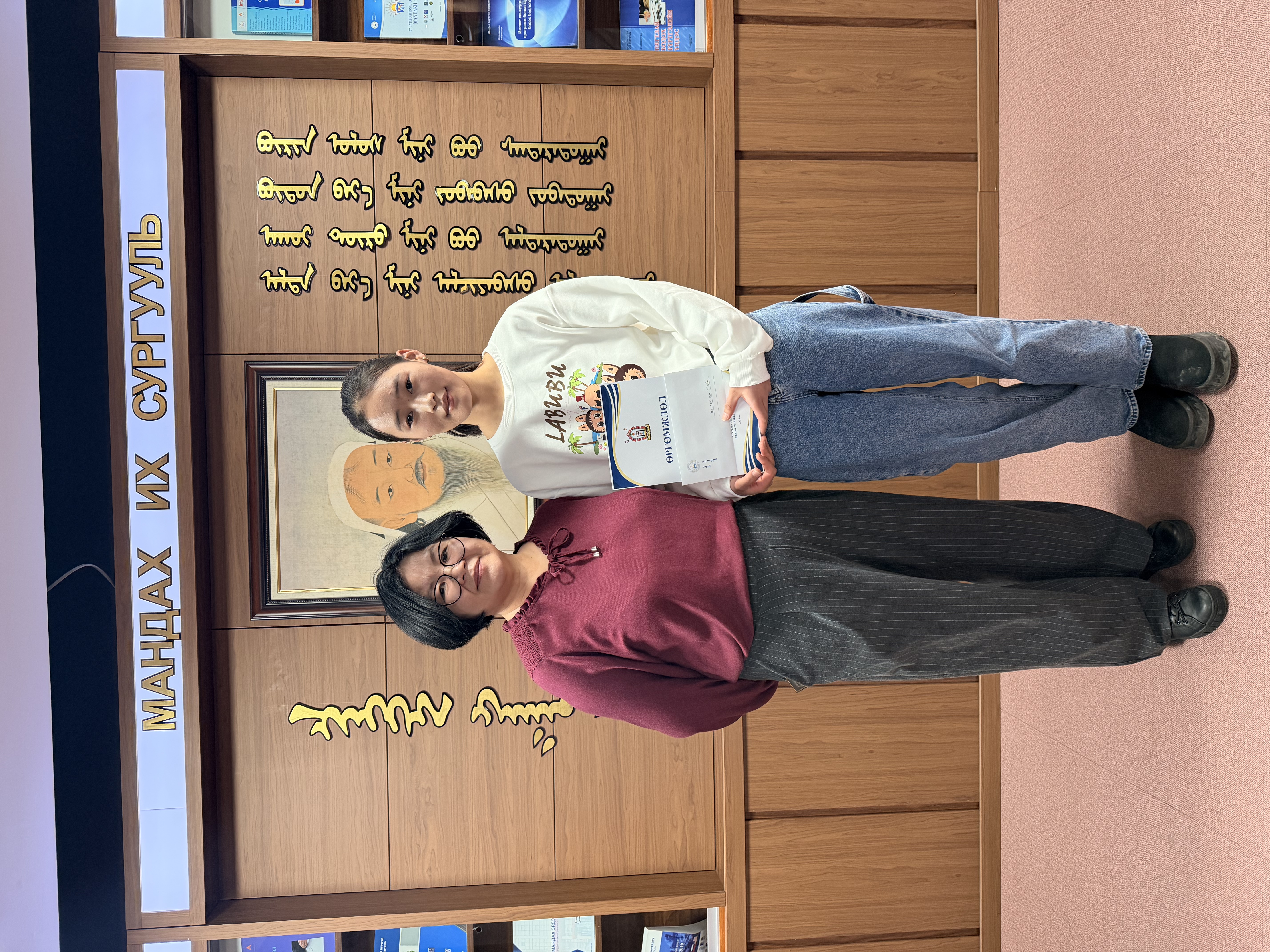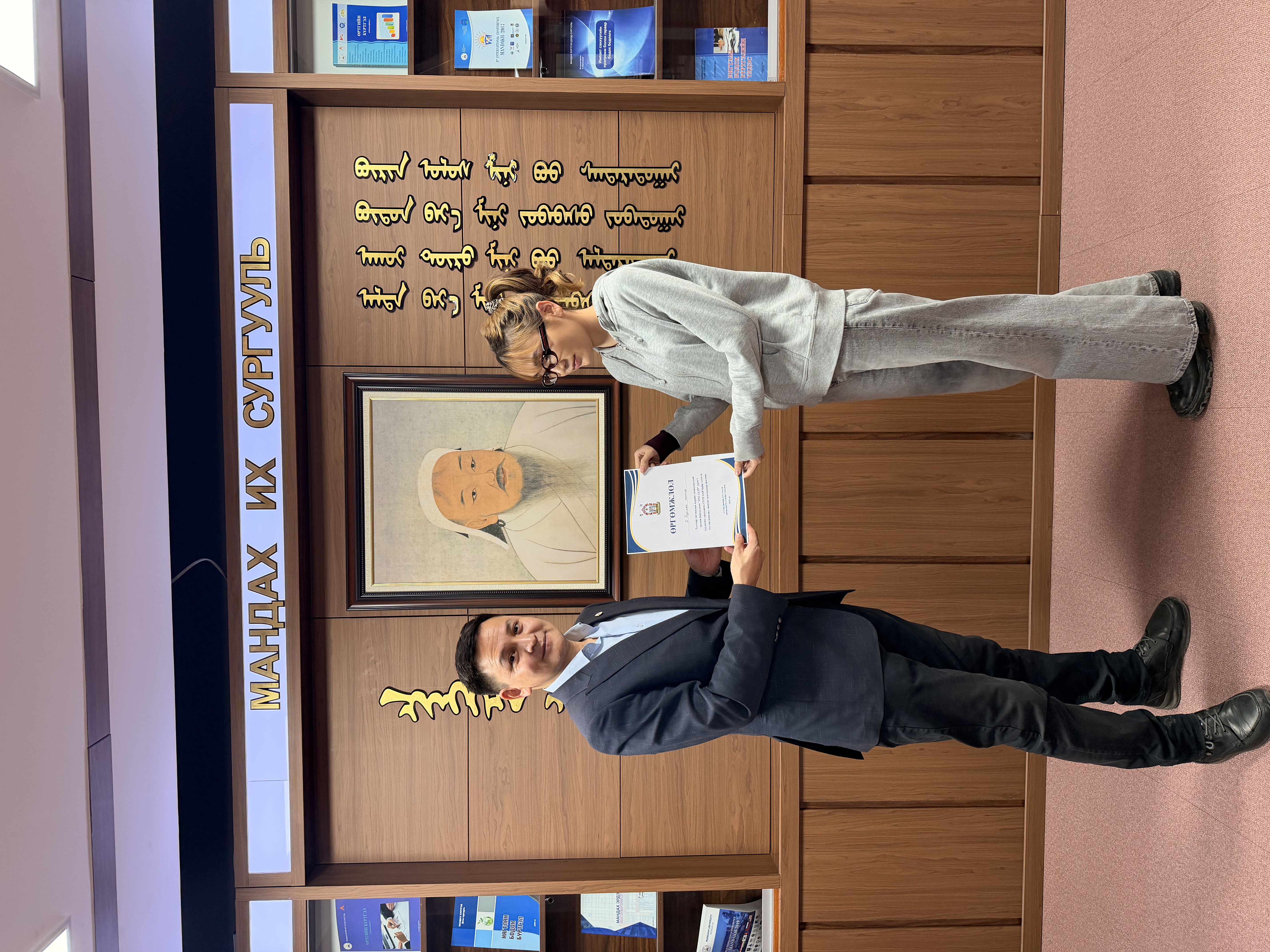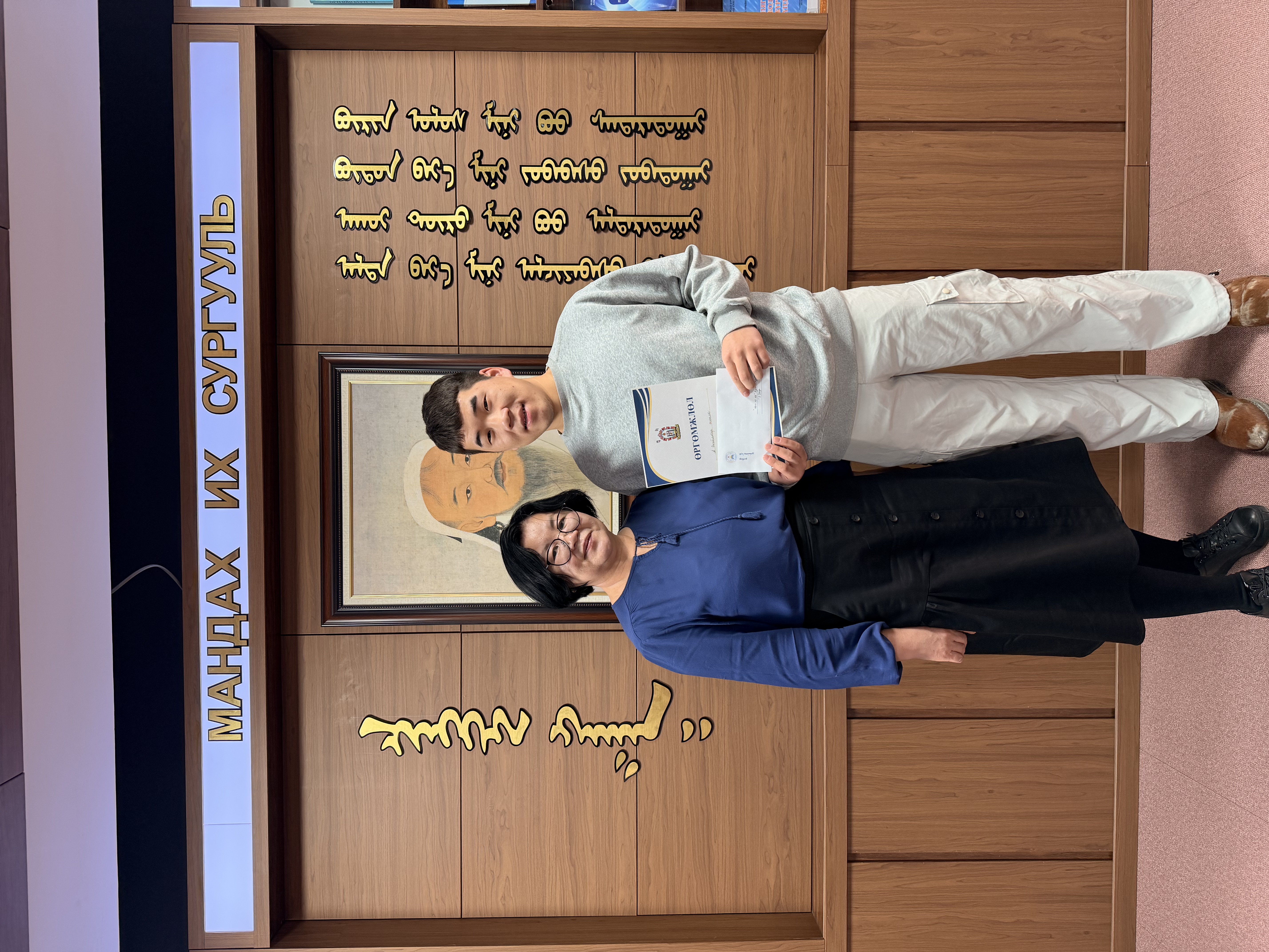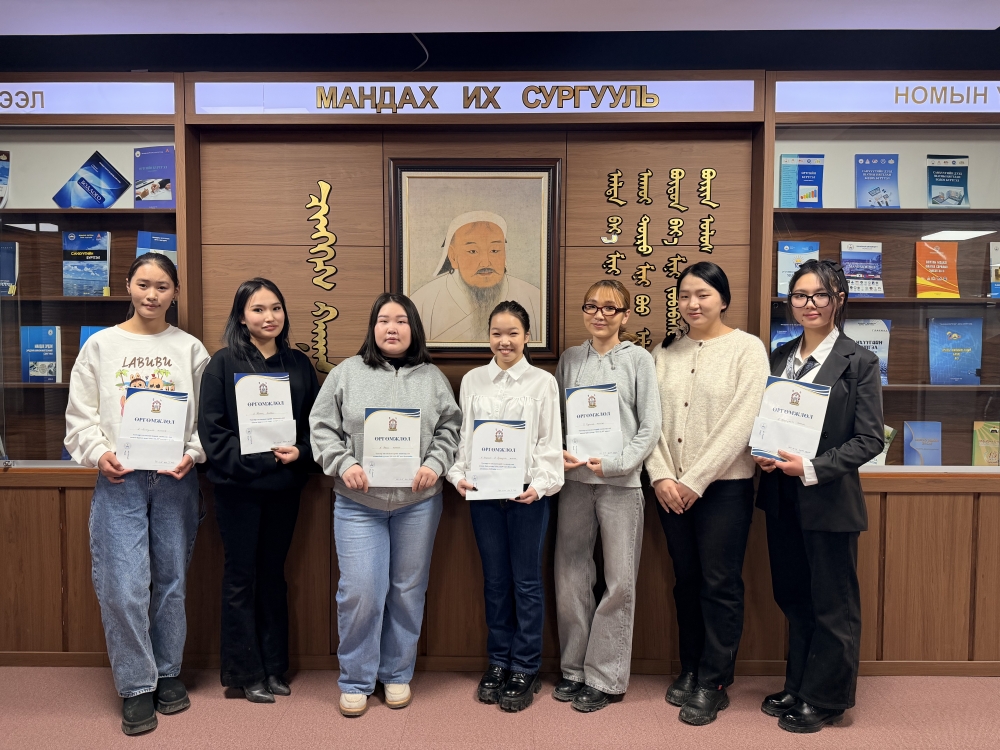 Video Content Competition: A Level 1 student, A. Nomin, who created video content on the theme “1911.12.29” using various AI tools such as Evenlabs, Chimege, ListenMe, Gemini AI, ChatGPT, LumaLabs, OpenArts, Flow, Kling AI, and CapCut, was awarded a certificate and a cash prize.