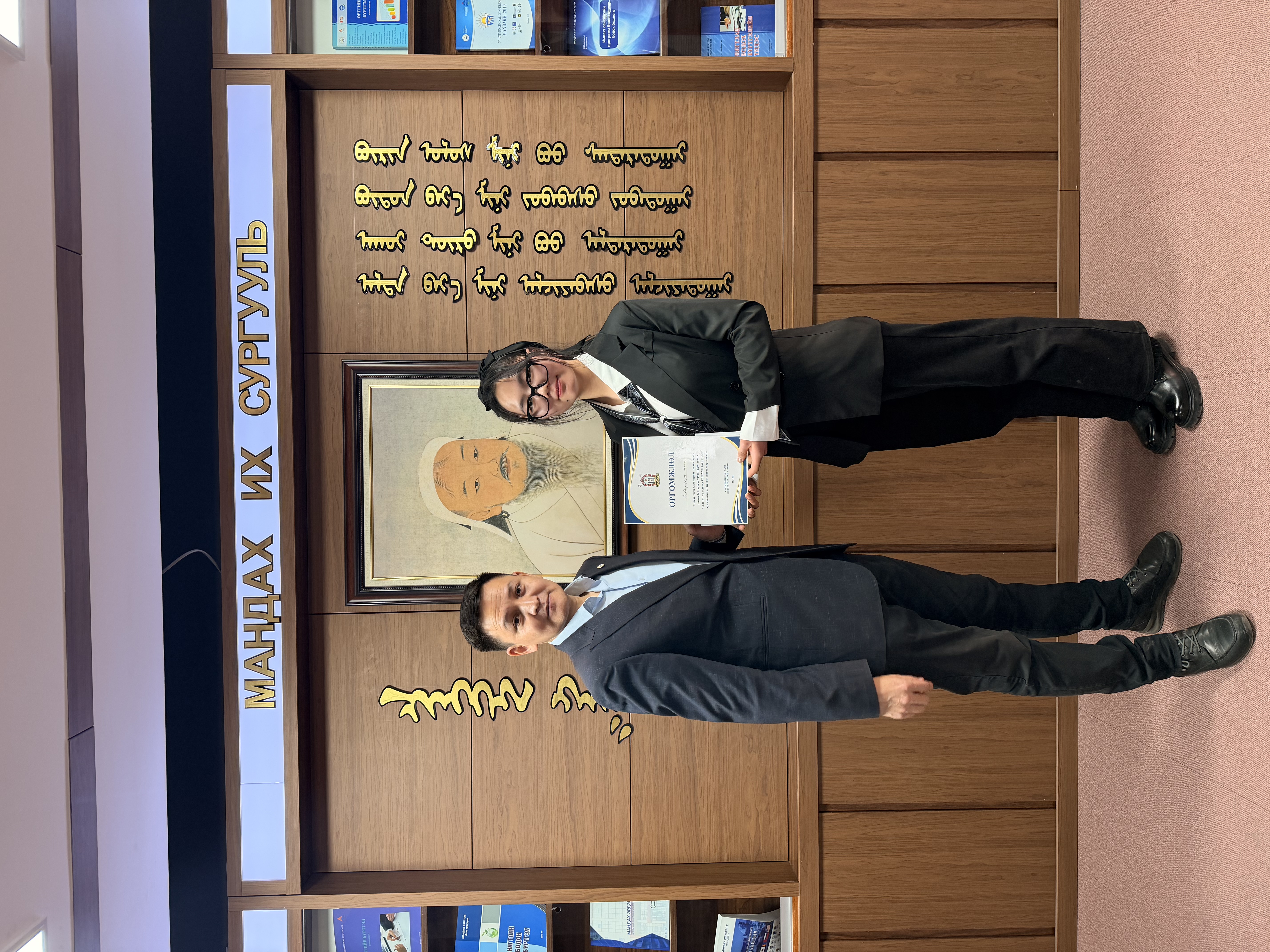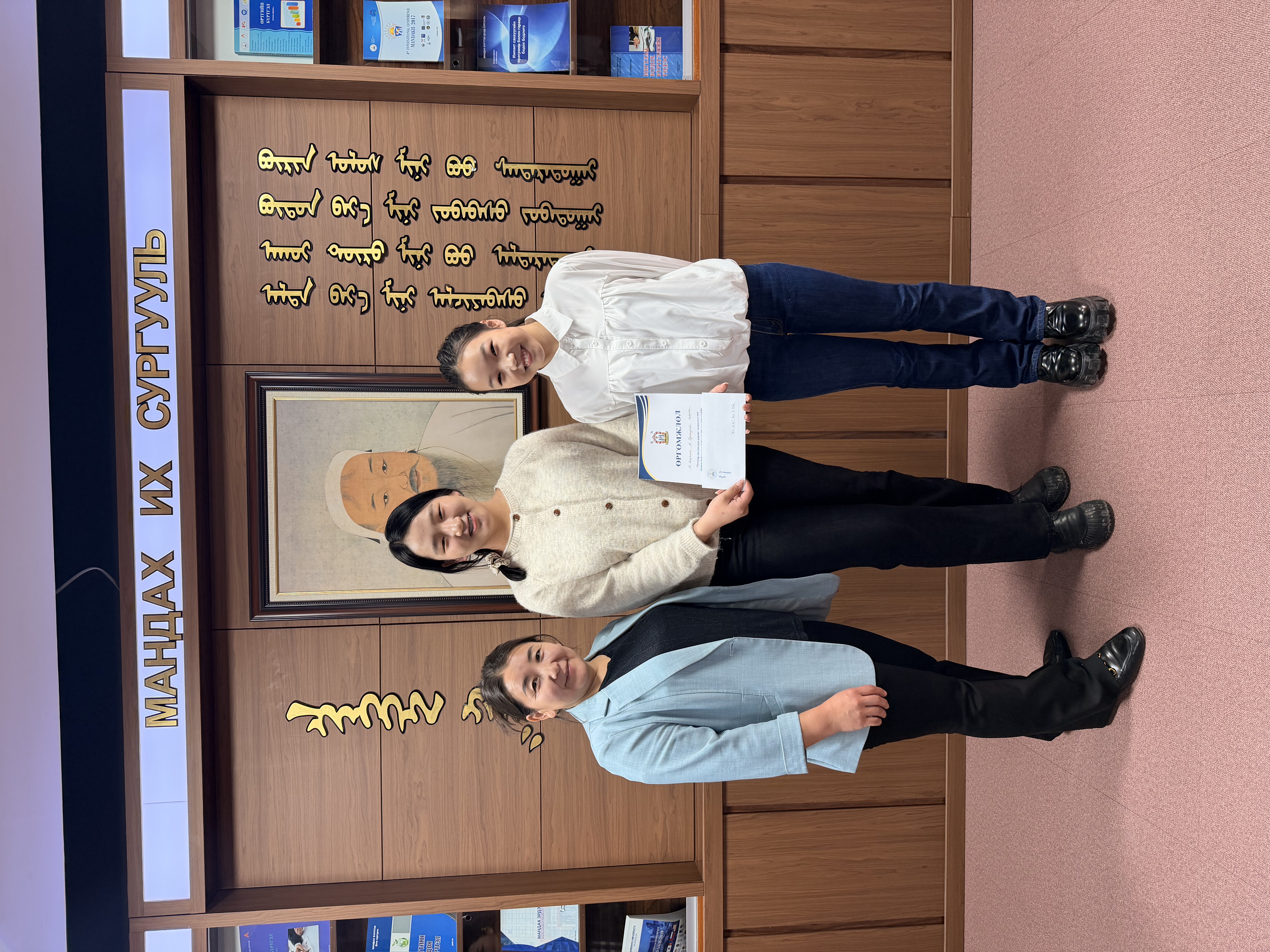 Furthermore, lecturers O. Battuya, P. Gantuya, and Ts. Nyamaa organized the dissemination of information related to this important historical date, promoting awareness through digital displays about the restoration of national independence.