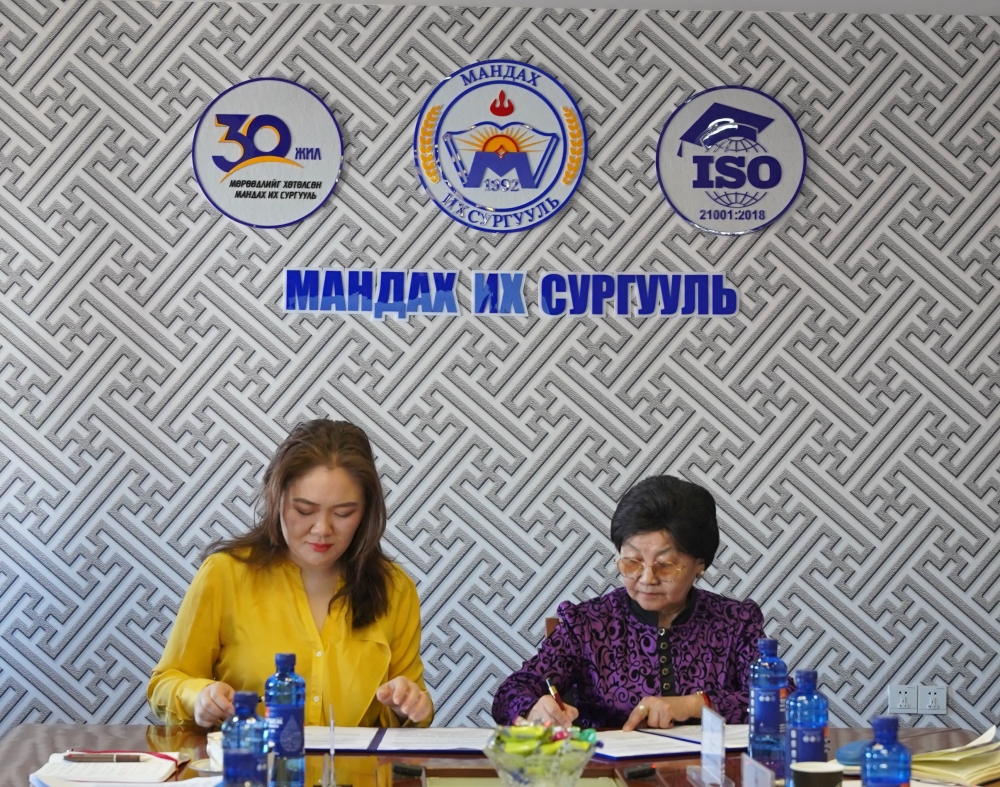 The signing ceremony was attended by B. Battsetseg, Head and Chief Inspector of the Government Inspection Agency, and G. Nanjid, President of Mandakh University, along with representatives from both parties.